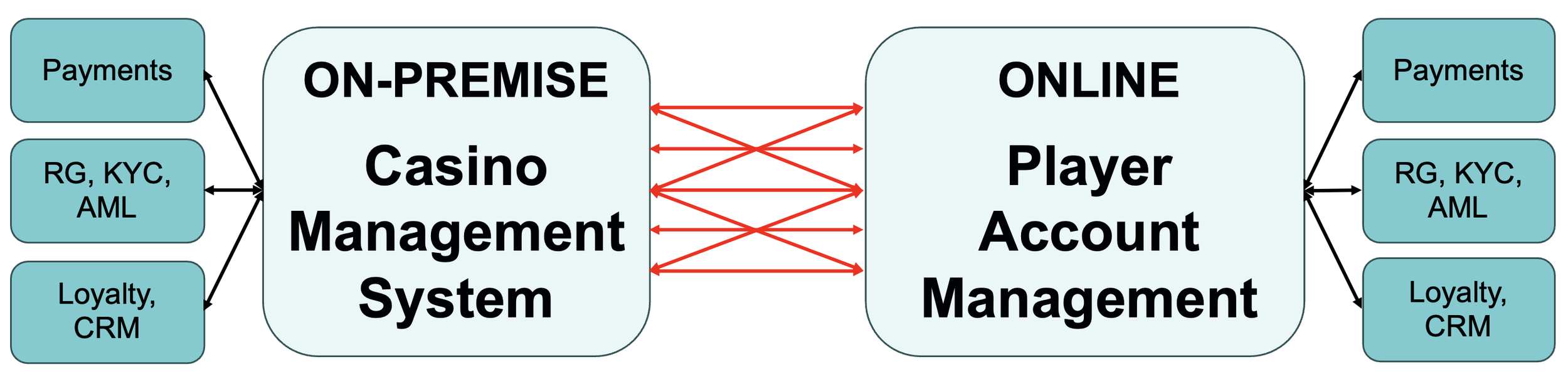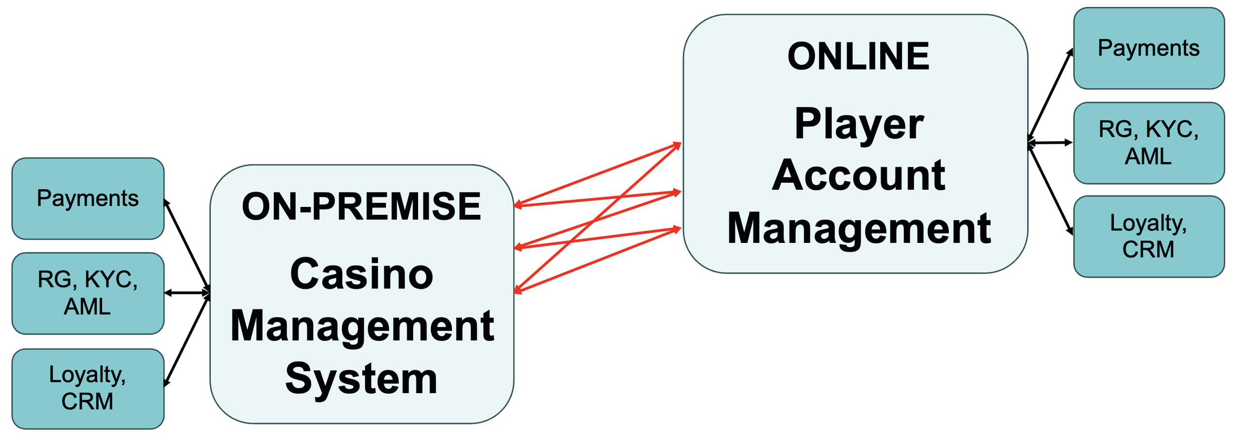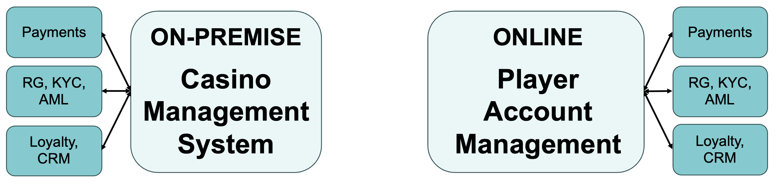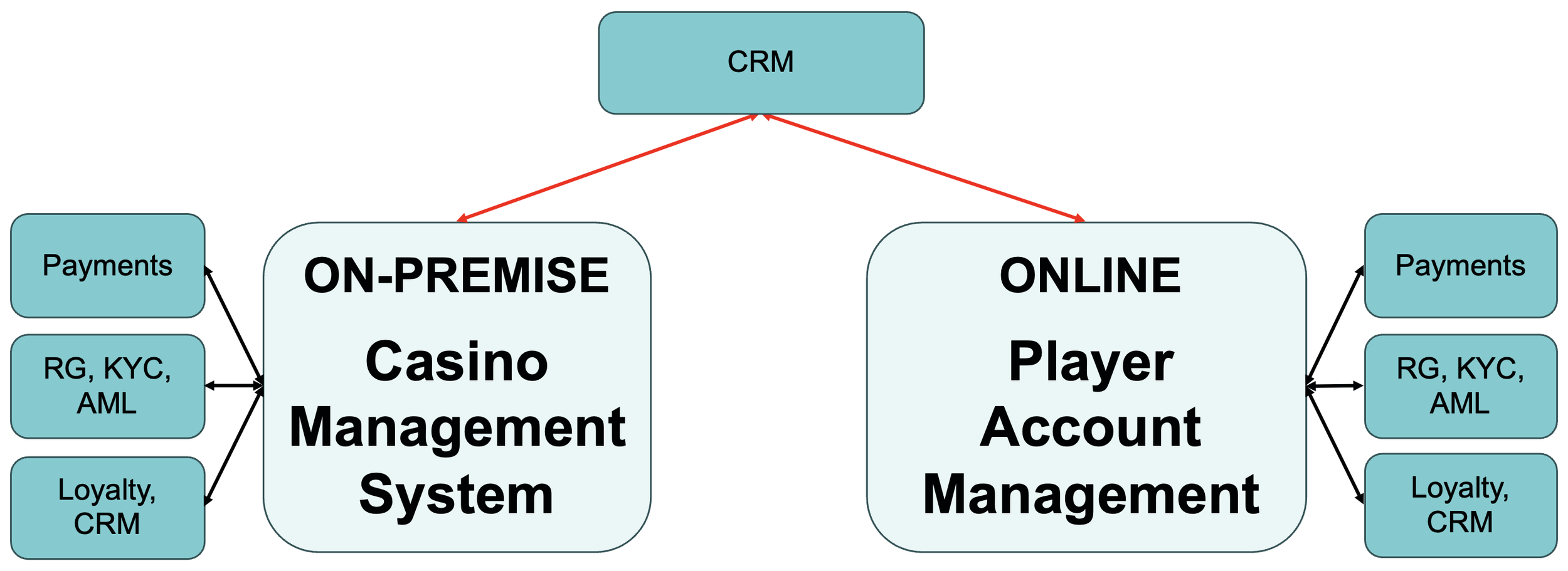 The starting point is at least two head ends - on-premise Casino Management System and online PAM: